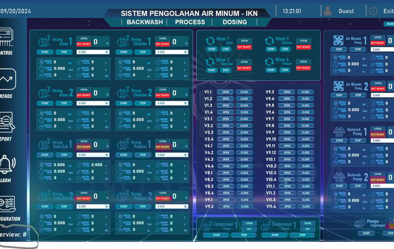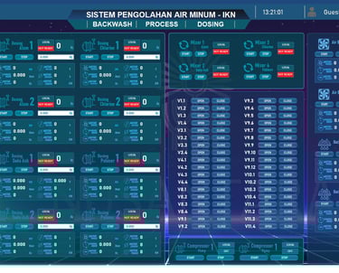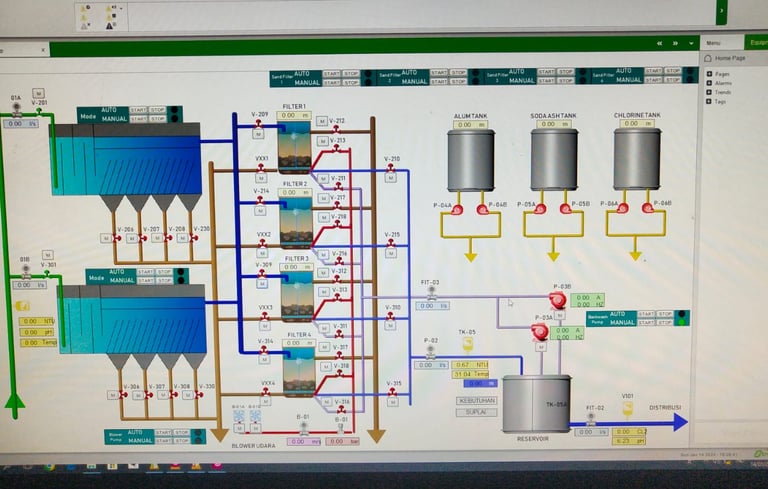 Our company has undertaken numerous projects in the field of water treatment and monitoring, focusing on both manual operations and fully automated control systems. Utilizing advanced SCADA (Supervisory Control and Data Acquisition) and PLC (Programmable Logic Controller) technologies, we have successfully installed our systems in various locations across Indonesia. These installations can be found in regions such as Tarutung, Dairi, Bilah Hilir, Nias, Tebo (Jambi), Kerinci, Riau, IKN, Amuntai, Bojonegoro, and Selopamioro, Yogyakarta. Our commitment to enhancing water management through innovative solutions has allowed us to contribute significantly to improving local water quality and operational efficiency.
